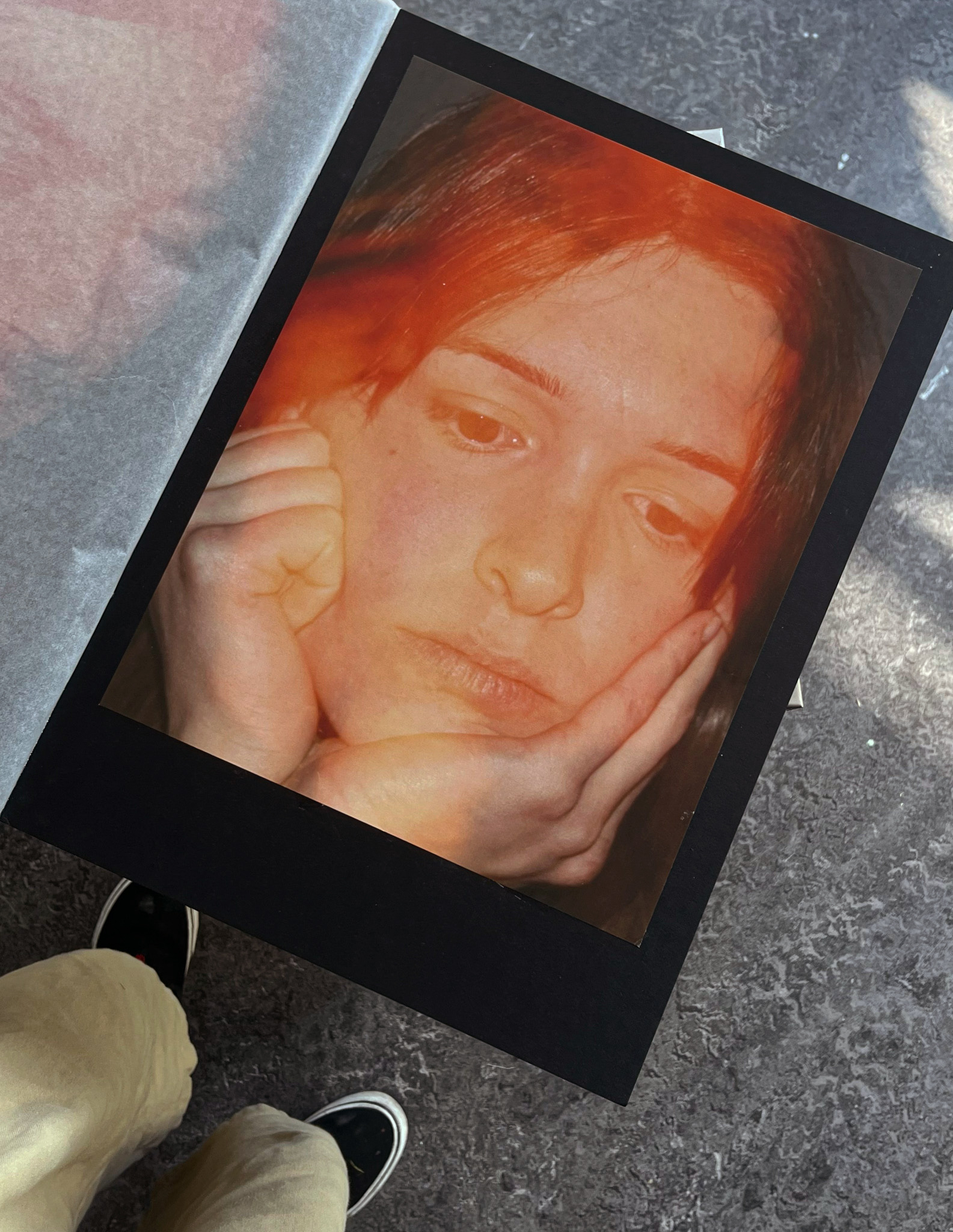 from the first AI-inspired head image. Created by hand, the analog process naturally produced a visual glitch.